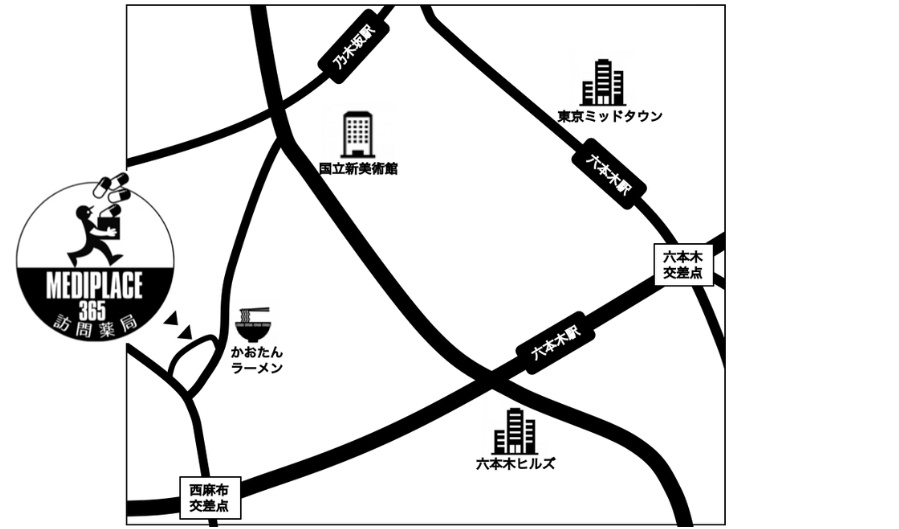 大江戸線/日比谷線 六本木駅 徒歩 8分 - バスでお越しの場合